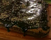 6 - Com o brownie assado, desenforme. Cubra com a cobertura de chocolate e, por cima de tudo, as castanhas picadas. Sirva!